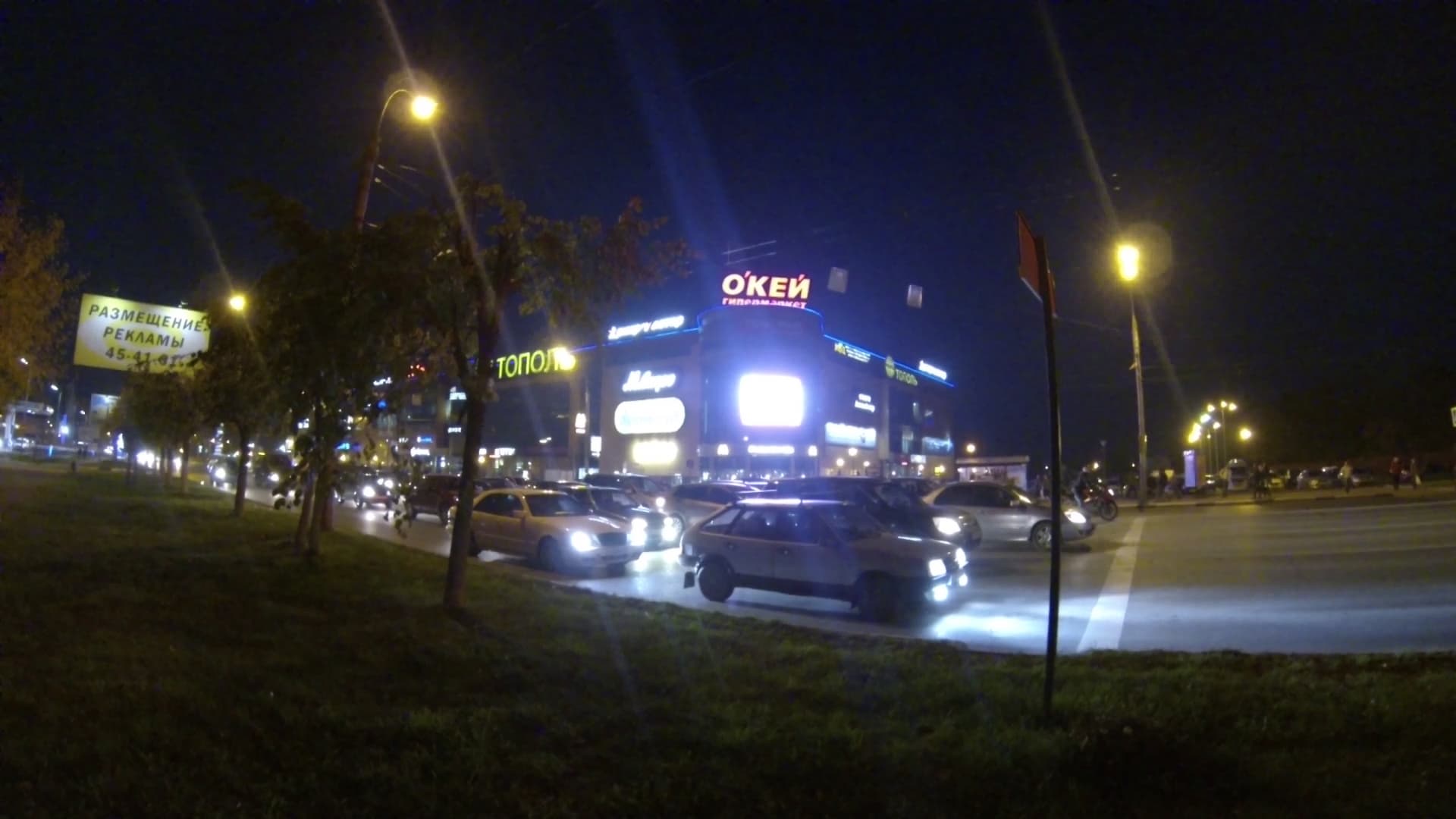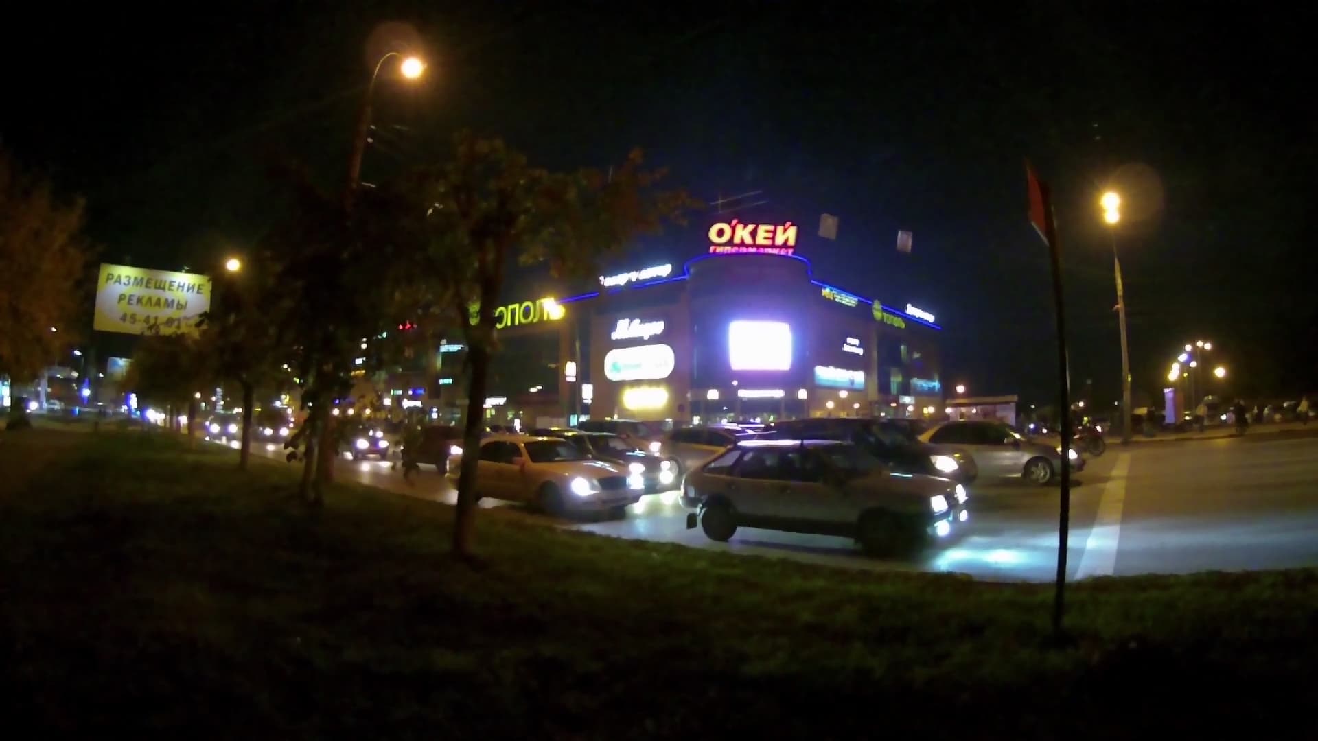 Да, эти съемки следует разобрать подробно, в деталях. Итак, первый ролик, снятый на поздневечернем оживленном проспекте. Картинка с первой камеры, AEE, выглядит совершенно пластилиновой, замыленной. Это следствие слишком агрессивной работы шумоподавления, необходимость которой, в свою очередь, вызвана усилением, без которого мы бы ничего не разглядели, кроме отдельных ярко освещенных объектов. Камера пытается во что бы то ни стало вытянуть из малоосвещенной сцены все возможные детали, а получается то, что видим. Чуть лучше это удается камере GoPro: здесь шумоподавление работает чуть менее активно, чем в камере AEE. Но картинка с камеры Wasp серьезно отличается от двух предыдущих. Такое ощущение, что шумоподавителя в камере вовсе не существует, либо он настолько хорош, что превращает крупные цветные пляшущие пятна в мелкий монохромный шумок.