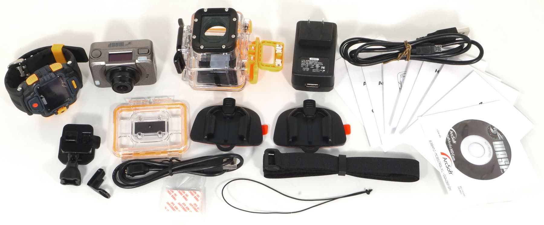 В отличие от двух представленных выше камер, данная модель комплектуется уникальным пультом дистанционного управления, выполненным в форме защищенных наручных часов. Мы обязательно расскажем о нем, а пока отметим наличие в комплекте всех необходимых типов креплений вместе с запасным набором клейких двусторонних пластинок.
