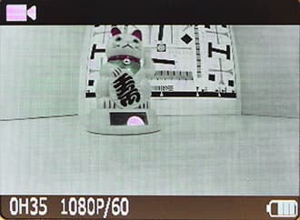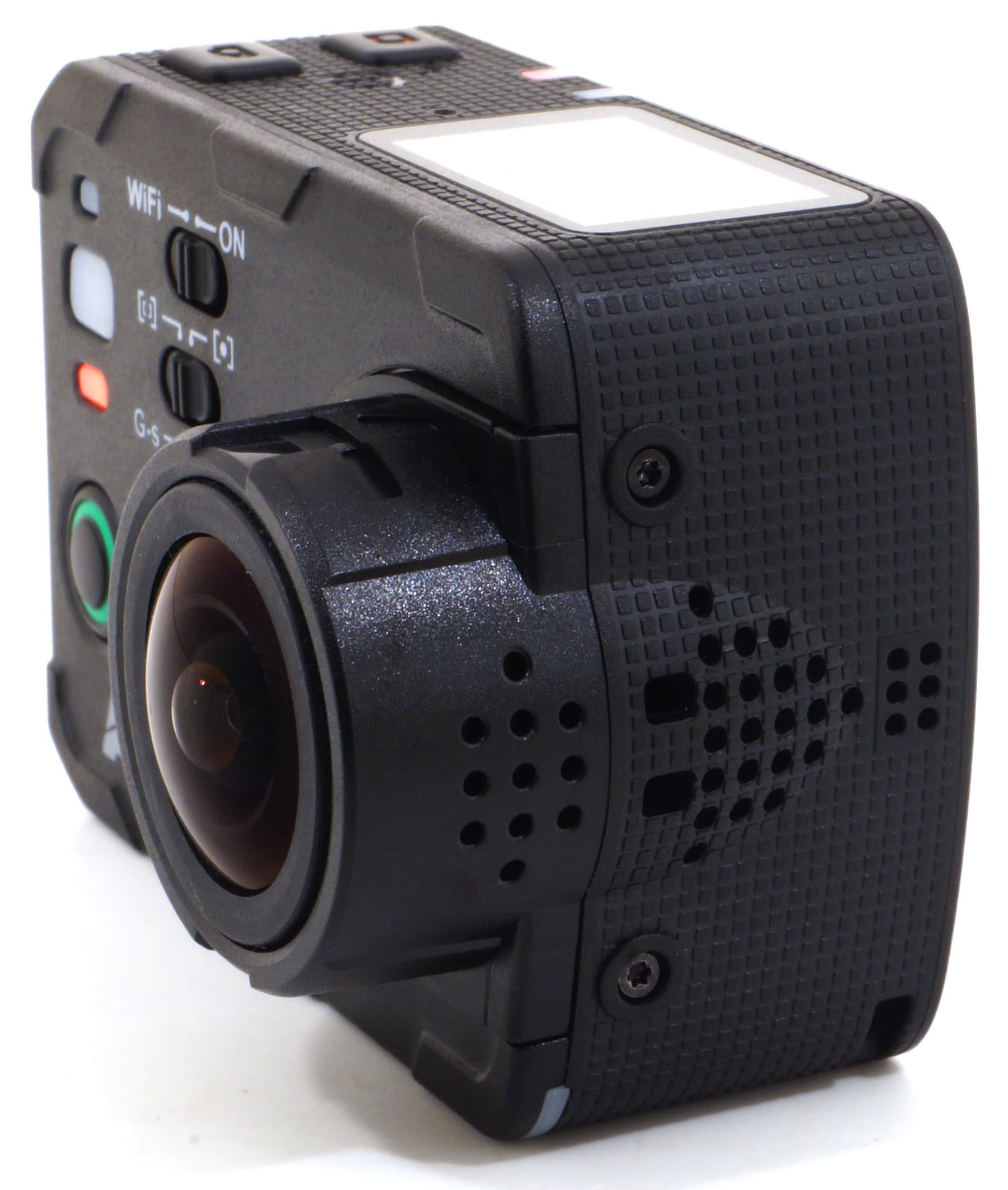 Передняя панель содержит аж четыре переключателя и кнопку старта видеозаписи. Пристегивающийся блок дисплея также оснащен кнопками, с помощью которых производится навигация по служебному меню. Вес этого дисплея составляет 28 граммов.