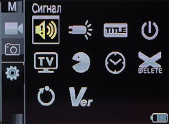 Данный дисплей отображает всю необходимую информацию: саму картинку, текущий режим записи, остаток заряда батареи. Навигация по меню оказывается наглядной благодаря крупным пиктограммам. Правда, многие пиктограммы не имеют поясняющей надписи, но для того и существуют руководства пользователя, чтобы их читать и запоминать прочитанное.