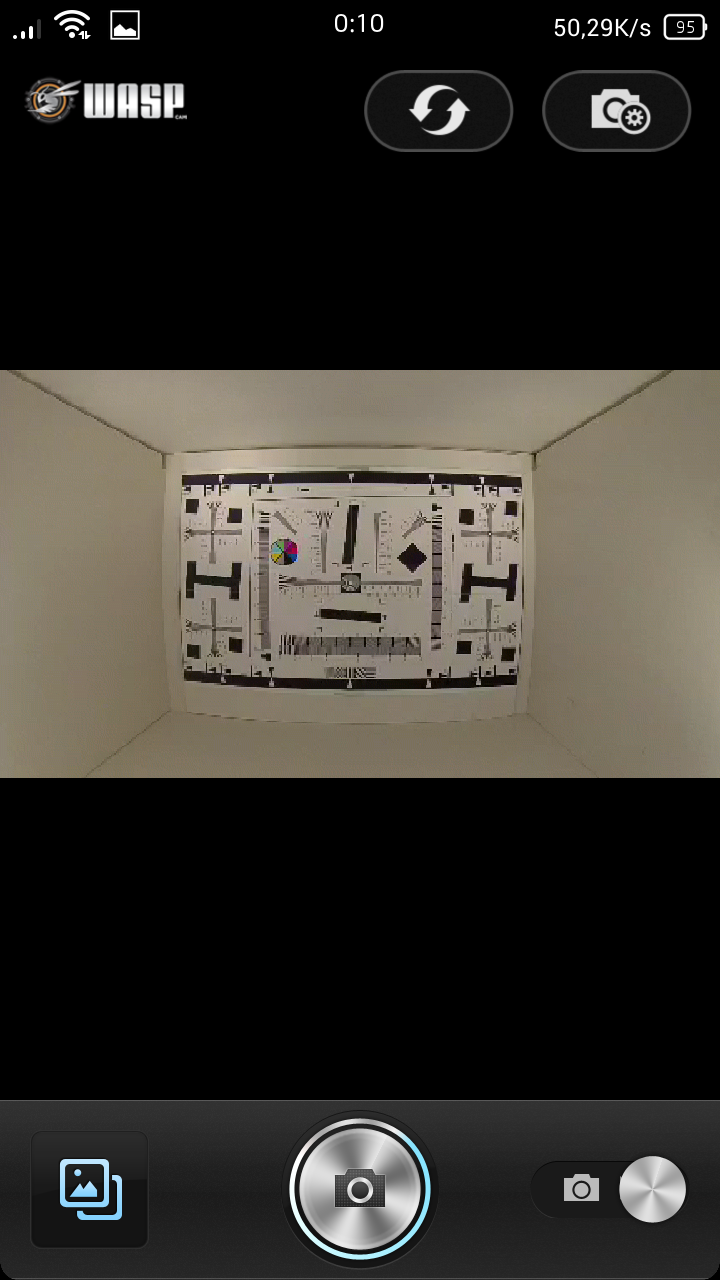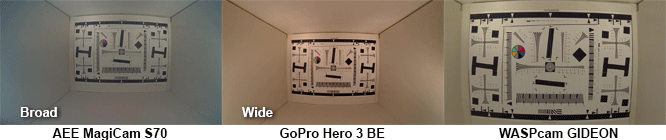 Нет-нет, камера WaspCam находилась во время съемки точно на таком же расстоянии от тестовой таблицы, что и две прочие камеры. Разница в широте охвата обусловлена упоминавшейся разной степенью «сферизации» картинки.