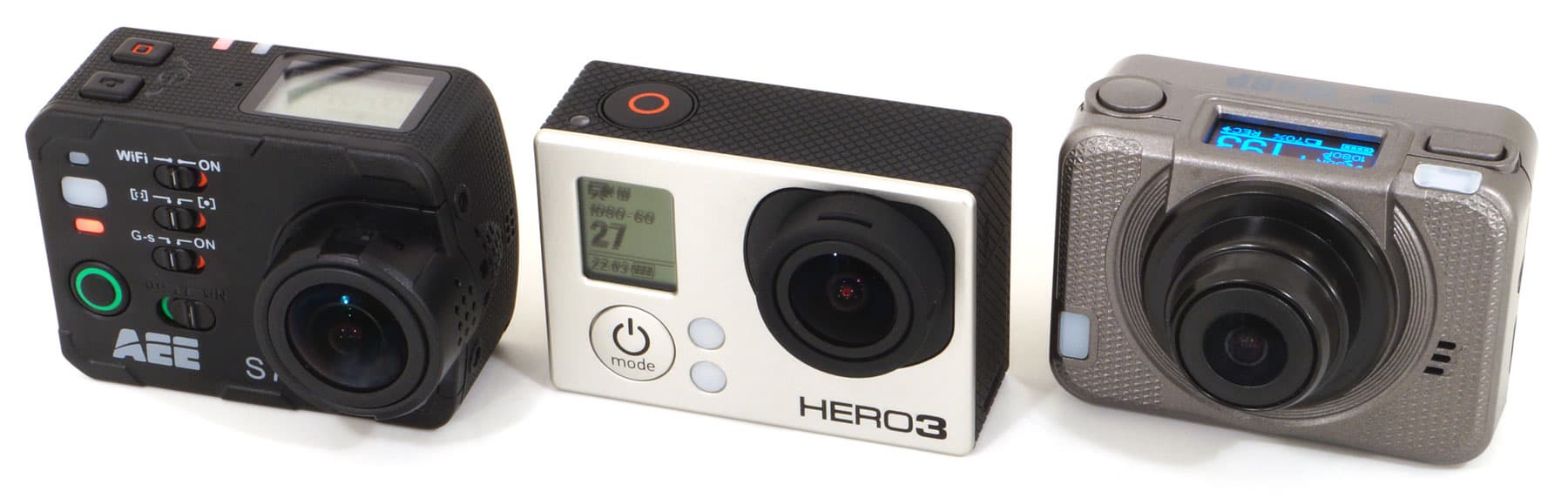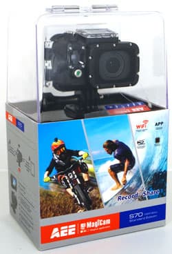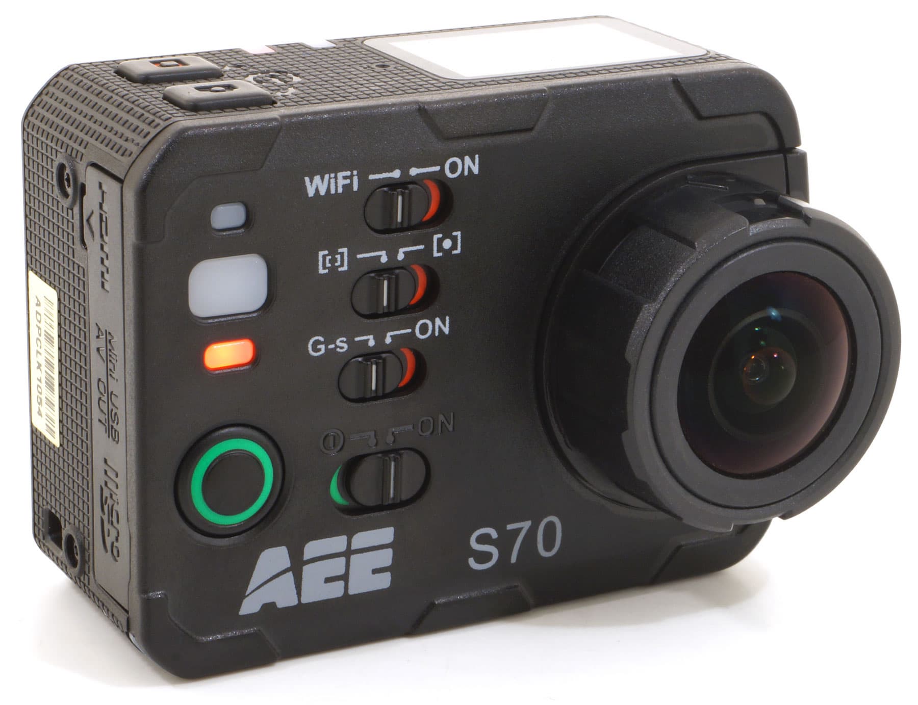 - AEE MagiCam S70 — богатая комплектация, наличие съемного ЖК-дисплея, долгое время работы от батареи, отсутствие роллинг-шаттера. Невысокое качество сжатия, недостаточная светочувствительность, невысокая разрешающая способность.
