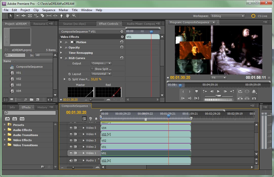 Данный тест проводится в целях оценки комфорта работы со сложными проектами в Adobe Premiere Pro CS5 (буквально слышится: — Ага, и как же это комфорт измерять собрались? Кардиограмму у несчастного монтажёра снимать удумали или соцопрос на улице проведёте?).