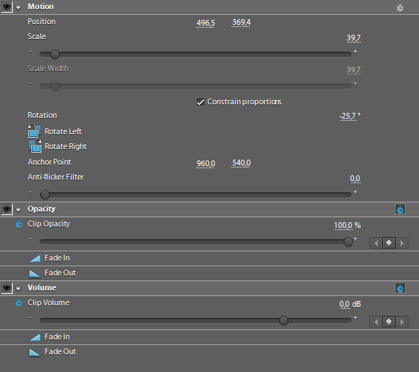 Впрочем, для более точного позиционирования и настройки других параметров объекта в программе имеется инструмент, являющийся аналогом панели Effects Control в Adobe Premiere Pro.