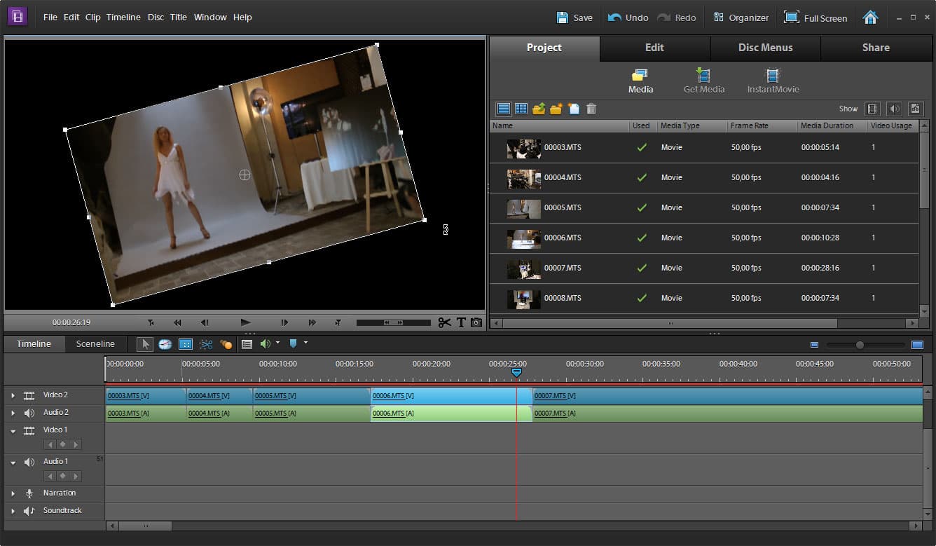 Радует, что простейшее редактирование геометрии как клипов, так и графики, по-прежнему доступно непосредственно в окне монитора. Здесь не требуется, как в большинстве прочих видеоредакторов, вызывать отдельное всплывающее окно редактирования. Изменение размера, перемещение, поворот — все эти операции производятся мышью, на лету.