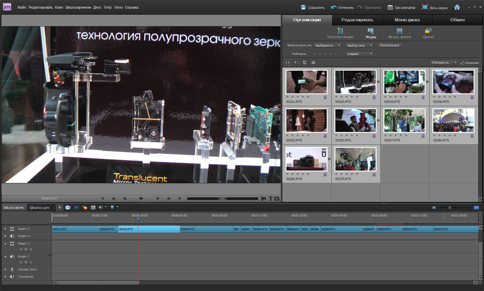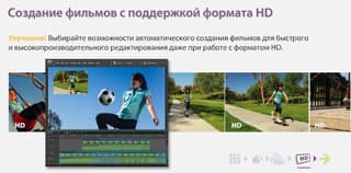 Первый пункт «новшеств» придётся оставить без подробного рассмотрения. По многим причинам (одна из таковых — отсутствие у нас этих самых «компактных видеокамер» и «фотокамер DSLR»). Но имеется и ещё одна причина: подобные новшества не являются ничем примечательным. Когда говорят о «быстром импорте», то подразумевается, как правило, всего лишь появившаяся возможность импорта определённых типов файлов. Очистку звука и дополнительный видеофильтр мы в данном обзоре, конечно, рассмотрим, как и возможность создания веб-DVD-диска. Что же касается автоматического видеомонтажа — всё украденосказано до нас.
