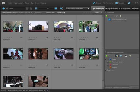 Итак, насладившись многообещающей информацией, приступим к работе и нажмём кнопку Организация. И тут же первая неожиданность: перед нами — совсем не та программа, обзор которой мы хотели бы сделать. Это — модуль, называющийся Elements Organizer, он выполнен в виде отдельной, независимой программы. Рассматриваемая версия Premiere Elements загружается также отдельно запуском команды Исправление -> Редактирование видео.