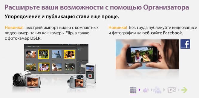 | Упрощенный импорт содержимого с компактных видеокамер и DSLR | Да | |||
