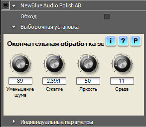 Все фильтры в программе редактируются с помощью ключевых точек; новые аудиофильтры, о которых идёт речь, также имеют эту возможность. Как видим, эти аудиофильтры имеют общее название — NewBlue. Если любопытствующий читатель посетит одноименный сайт, то непременно найдёт все эти аудиоинструменты, имеющие название NewBlue AudioFX.