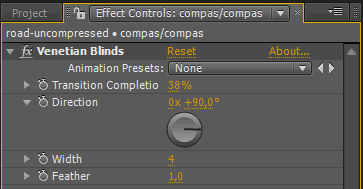 Совсем солидный вид наш компас приобретёт, если добавить к проекции на лобовом стекле какие-нибудь помехи технологического свойства. Например, тонкие горизонтальные полосы, напоминающие телевизионную развёртку. Сделать это можно с помощью имеющегося в After Effects фильтра Venetian Blinds.
