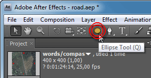 Только весь вид портят обрывки карты, выступающие за края рамки компаса. Не беда — снова вернитесь в композицию compas/compas и выберите инструмент Ellipse Tool (Q). Выделите слой words/compas, и дважды щелкните по значку Ellipse Tool.