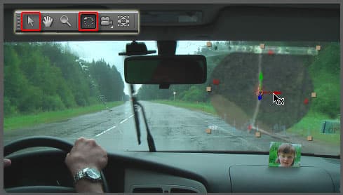 На экране появится прямоугольник с перекрестием в центре фигуры. Перетащите его на достаточно контрастную область видео в нашем случае роль такого якоря неплохо сыграла фотография, вставленная в щель подушки безопасности на приборной панели.