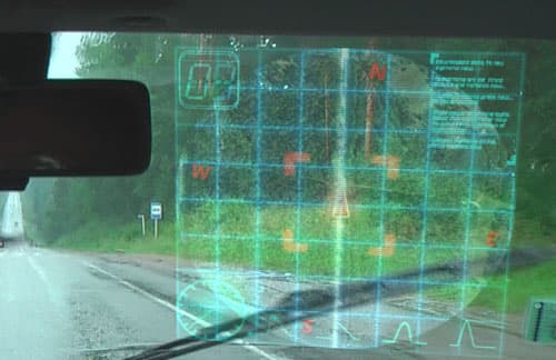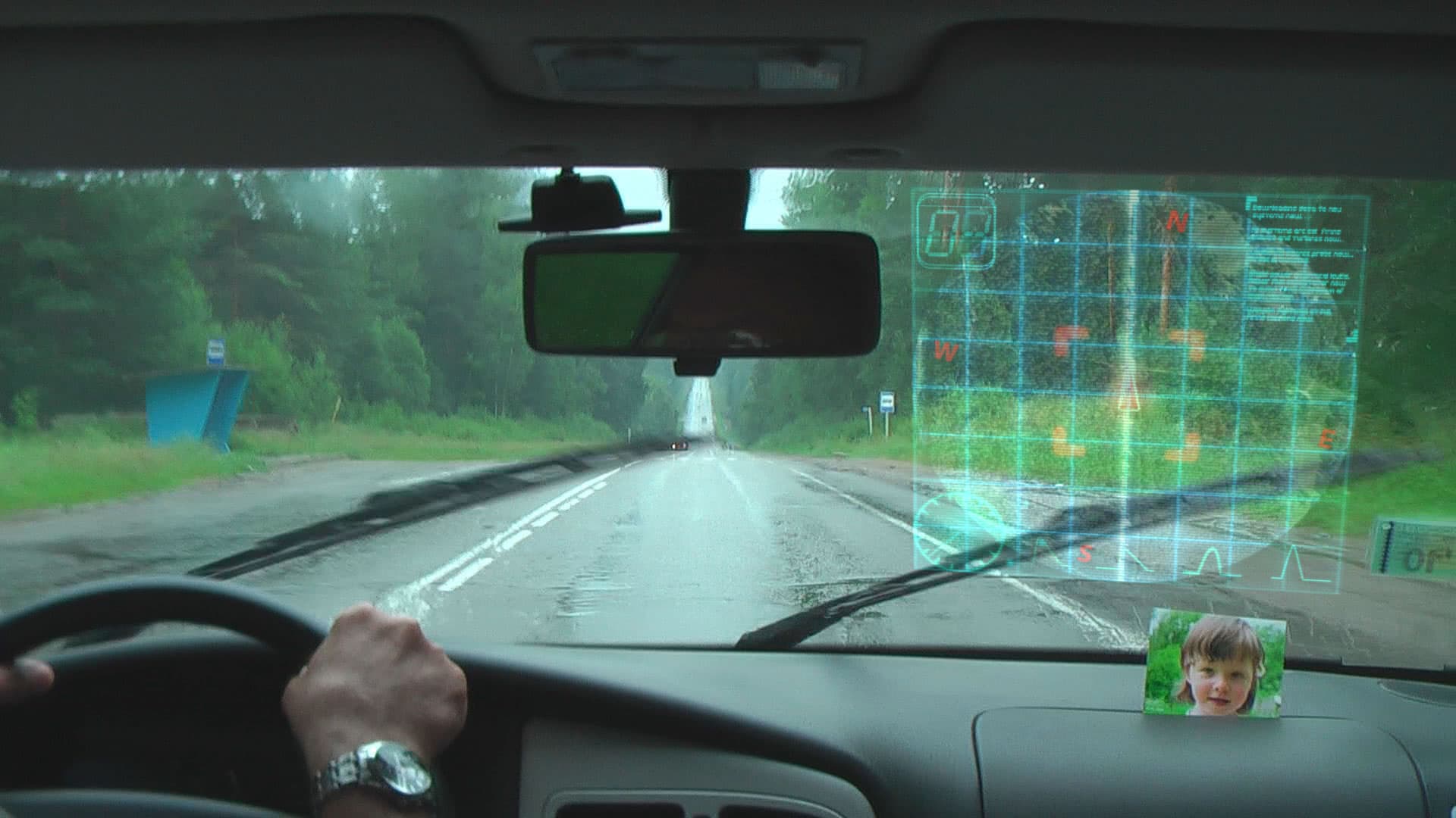 И, наконец, последний штрих — "приклеивание" этой проекции к лобовому стеклу. Увы, как мы ни старались перед поездкой жёстко закрепить камеру на заднем сиденье автомобиля, сколько ни изводили бечёвки со скотчем — всё равно изображение в кадре пляшет. А если учесть степень ускорения проигрывания этого видео — тряска становится поистине раллийной. Отсюда вытекает ещё одна проблема: наша "проекция" пляшет на лобовом стекле, выдавая с головой весь секрет. Особенно это заметно на экране с большой диагональю. На видеоролике можно увидеть ту разницу, которую даёт точная синхронизация в сравнении с нестабильной проекцией: