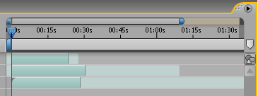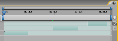 Как видим, на таймлинии по порядку расположены клипы (сплошной светло-зеленый цвет), границы активности которых отмечают моменты начала/окончания нужных сцен (более насыщенный зеленый цвет). Пробелы между выбранными сценами — это время, когда объект съемки пересаживался с одного кресла в другое, эти кадры нам уже не понадобятся. Каков будет следующий шаг? Разумеется, нам необходимо совместить эти сцены, выстроив их не по порядку, а одну над другой. Зацепив мышкой верхний клип (не за край, а за его середину), сдвиньте его влево, в самое начало таймлинии — не забывайте при этом удерживать Shift для «примагничивания» клипа. То же проделайте с остальными клипами.
