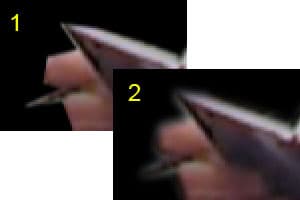 Результат: что было (1), и что стало (2). Как вы можете заметить, подобное смягчение границ может привести к появлению неприятного последствия: светящееся гало вокруг границы маски очень заметно.