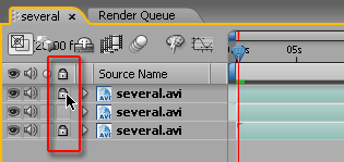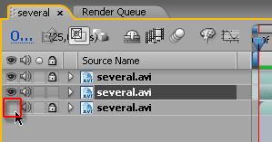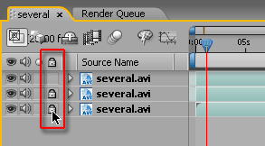 Настала ключевая фаза работы — исключение ненужного фона из клипов, лежащих поверх основного клипа. За основной клип мы примем тот, на котором объект съемки находится на наибольшем удалении от камеры — в нашем случае это сцена, где будущий клон сидит за монитором в центре кадра. Начнем мы с клипа, находящегося на самом верху таймлинии. На всякий случай (во избежание досадных ляпов), заблокируйте от любых изменений две нижние дорожки, для этого щелчком мыши поставьте замочек в соответствующих служебных полях треков.
