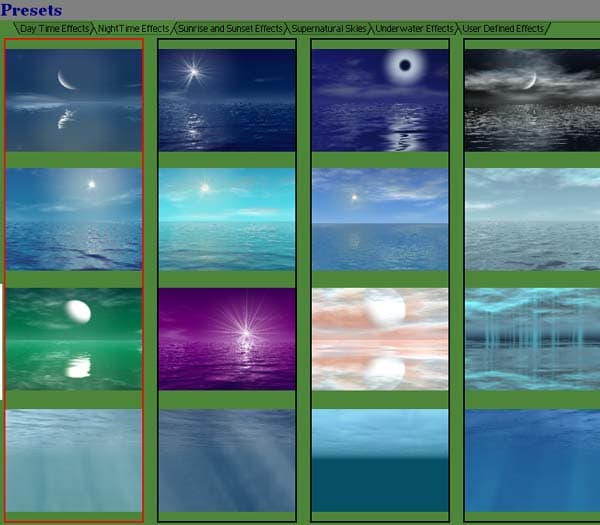Все параметры анимируемы, при желании можно создать, например, динамичное видео с закатом солнца, бегущими облаками и начинающимся штормом. Содержит готовую библиотеку пейзажей. Очень «тяжёл» в обсчёте.