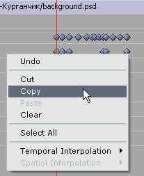 Нажав правую кнопку мыши, выберите из контекстного меню команду Copy (либо нажмите Ctrl+C). Далее вам останется лишь выделить тот клип, которому вы хотите присвоить скопированные параметры движения, и, активировав окно Effect Controls, вставить ключевые точки командой Paste (Ctrl+V).