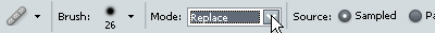 Выбрав инструмент Healing Brush Tool (J), измените режим его работы с Normal на Replace. Размер кисти и ее форму выберите, исходя из размера и формы вашего объекта.
