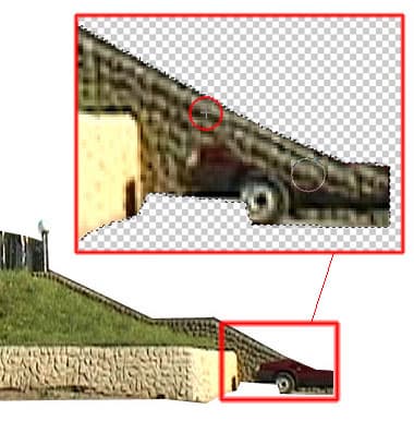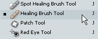 Стереть лишние предметы, загораживающие нужный нам объект, создать иллюзию того, что этих предметов здесь словно и не существовало, можно несколькими способами. Чаще всего применяют инструмент Clone Stamp Tool (S), однако в данном случае лучше воспользоваться другим: Healing Brush Tool (J) слишком мала площадь изображения, клон которого нужно перенести в определенный участок. Дело в том, что оба инструмента могут клонировать изображение путем его копирования в указанное пользователем место, однако, если первый инструмент жестко "привязывает" точку, откуда копируется изображение, к текущему положению курсора, то второй инструмент поступает иначе: при каждом новом нажатии клавиши мыши точка, откуда берется изображение, "стартует" с прежнего места, независимо от текущего положения курсора (кисти). Если вы испробуете в работе поочередно оба инструмента, то немедленно определите разницу.