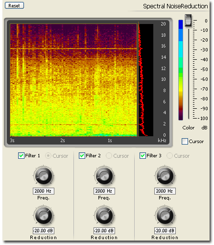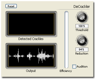 Фильтр DeCrackler также инструмент очистки звука, он удаляет треск и разные виды гудения, а также снижает последствия амплитудных искажений.