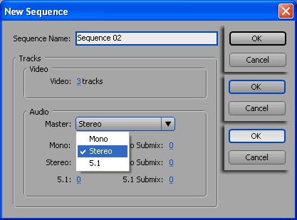 Изменился дизайн вспомогательных панелей, к примеру, New Sequence (Ctrl+N). Активное поле здесь обрамляется синей каймой, значения изменяются не стрелками вверх/вниз, а ползунком. Выбранный пункт в выпадающем списке теперь отмечается флажком, а нажатая кнопка вспыхивает белым цветом, сигнализируя о производимых вами действиях.