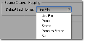 В пункте Default track format вы можете выбрать 4 значения из выпадающего списка. По-умолчанию установлен пункт Use File, то есть, если вы импортируете файл со стереозвуком, то выбранная дорожка будет являться стерео, а если для стереофайла выбрать пункт Mono, то файл будет автоматически разбит на две звуковые моно дорожки.