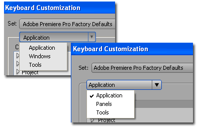 Значительно расширен список команд, к которым можно применять комбинации горячих клавиш. Переработано окно Keyboard Customization: в выпадающем списке вместо пункта Window теперь располагается пункт Panels. Выбранный из выпадающего списка пункт теперь помечается флажком.