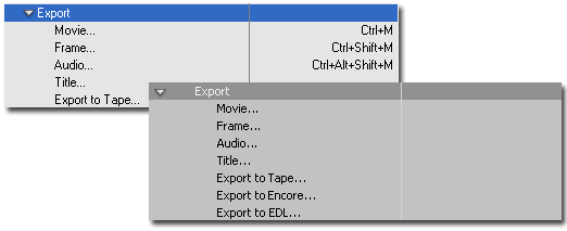 Были удалены комбинации горячих клавиш у команд Export>Movie/Frame/Audio при желании вы можете самостоятельно их ввести, так как на данный момент они не закреплены ни за одной из команд (Ctrl+M, Ctrl+Shift+M, Ctrl + Alt+Shift+M).