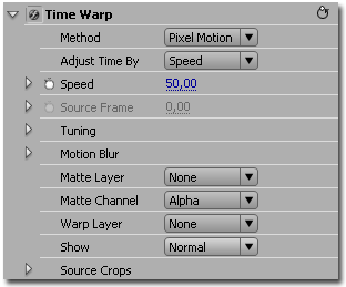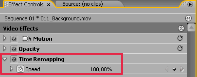 Ну и, наконец-то, многократное "Vivat!". В закладке Effect Controls в разделе Video Effects появился новый фиксированный пункт Time Remapping - как вы уже догадались, этот эффект предназначен для замедления или ускорения видео, но не линейного, как раньше, а с поддержкой изменений по ключевым кадрам.
