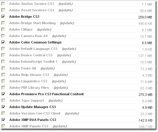 В данном обзоре будет рассмотрена Beta версия программы Adobe Premiere Pro CS3 для платформы Windows. Новый интерфейс инсталлятора программы Adobe Premiere Pro CS3, однотипный для всей линейки продуктов CS3, отличается строгостью и представляет собой подробный список предлагаемых к установке компонентов. Если у вас уже установлен какой-либо продукт из новой линейки, к примеру, Adobe Photoshop CS3, то список активных компонентов значительно уменьшается.