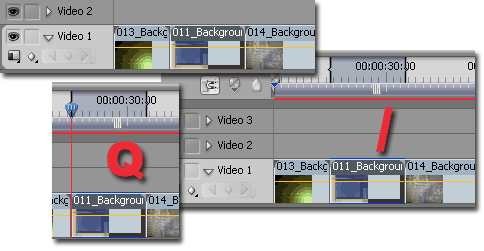 Увы, по-прежнему, чтобы переместиться в начало и конец выделенного клипа, нужно делать лишние шаги, разработчики так и не добавили прямых команд. Сначала устанавливаются точки входа/выхода, достаточно просто нажать клавишу /, а для перемещения между точками In/Out Point нажимаются клавиши Q (точка входа) и W (точка выхода). Снятие выделения производит нажатие клавиши G.