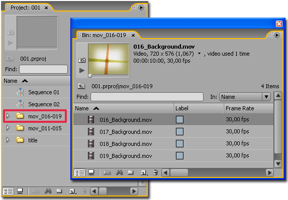 Многим пользователям раньше не хватало возможности разделять папки и клипы в панели Project: организация работы с папками оставляла желать лучшего. Разработчики программы исправили ситуацию, предложив три варианта работы с папками. Простой пример: создаете новую папку (Ctrl+/) и размещаете в ней клипы. По двойному щелчку мышью на значке папки в списке панели Project откроется автономное окно Project с клипами из выбранной папки. Теперь вы можете производить с этим окном все те манипуляции, что возможны с любой другой панелью интерфейса.