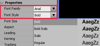 Скроллинг списка титров Font Family работает и в палитре Title Properties: теперь не нужно, как раньше, выбирать пункт Browse и вызывать окно Font Browse. Упразднен пункт More, который вызывал следующие списки со шрифтами. Выбор Font Style вынесен отдельным пунктом, дополненным выпадающим списком.