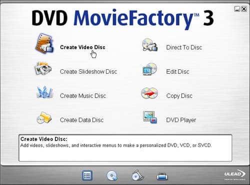 Если следовать логике менеджеров Ulead Systems, дающих названия продуктам корпорации - эта программа должна являться не чем иным, как мастерской по изготовлению DVD (а не фабрикой, в отличие от рассмотренного выше продукта). Может быть, именно поэтому на программной заставке не наблюдается счастливых лиц?