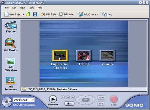 Нельзя не упомянуть, что программа Sonic MyDVD существует в трех вариантах, разнящихся своими возможностями: