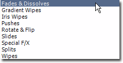 79 доступных эффектов, которые можно применить к выделенным клипам, представляют собой стандартные заготовки, также разбитые по группам.