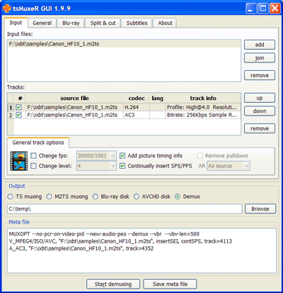 Последний вариант вывода Demux, демикширование (разделение) входных файлов на отдельные (элементарные) потоки: видео и звук. Этот вариант вывода будет рассмотрен отдельно. Пока что более подробно остановимся на создании BluRay и AVCHD.