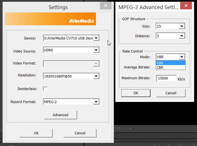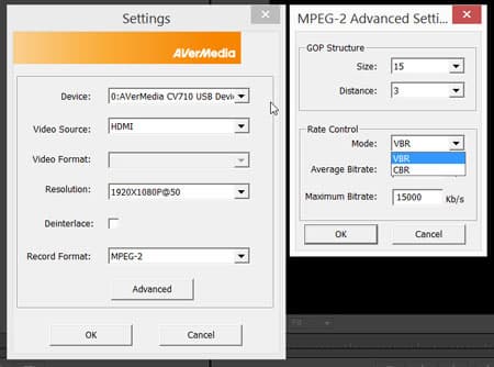 Здесь можно видеть те же самые настройки, которые мы наблюдали в Sony Vegas — источник сигнала, размер кадра и формат записи. На следующем снимке представлены настройки формата MPEG-2, дополнительные настройки вызываются нажатием кнопки Advanced. В них доступны изменение размеров GoP-структуры, а также тип и величина битрейта. В первый параметр соваться не следует, если вы не разбираетесь в особенностях MPEG-кодирования для тех или иных типов видео. Со вторым параметром все проще — в большинстве случаев выбрать следует, конечно, VBR, ну а битрейт, как говорится, по вкусу.