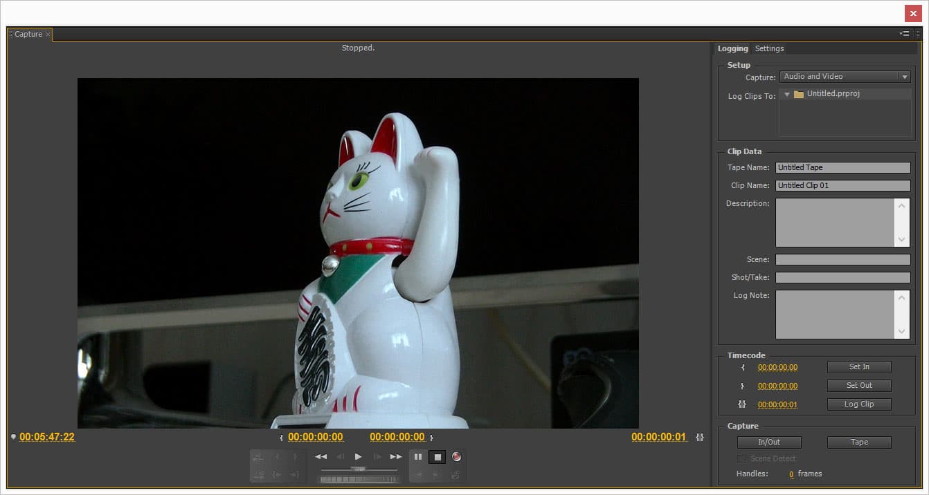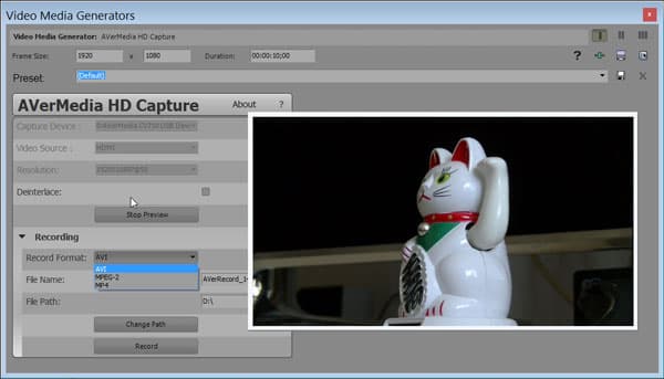 Теперь все, что остается, это перетянуть на таймлинию иконку выбранного генератора, при этом мгновенно откроется окошко захвата со следующими настройками: