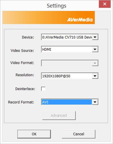 Но почему, спросит читатель, не приведены настройки для формата AVI? Дело в том, что этих настроек попросту нет. Как видно на следующем скриншоте, кнопка Advanced, хоть и присутствует, оказывается недоступной, неактивной, и захват ведется только в несжатый AVI. О плачевных результатах такого захвата мы уже рассказывали — ноутбучному диску не хватает скорости, чтобы записать в файл столь внушительный поток данных.