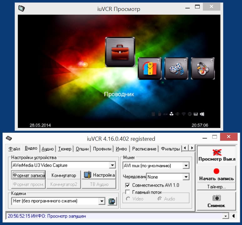 Впрочем, «требование » это слишком громко сказано. Ведь подавляющее большинство программ, в том числе и бесплатных, прекрасно работают с DirectShow. Любой случайно выбранный софт после недолгой настройки тут же отображал картинку, поступающую по USB с AverMedia ExtremeCap U3.
