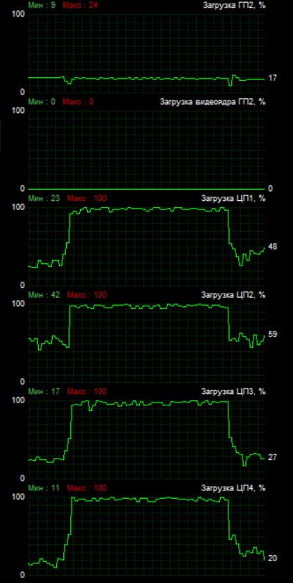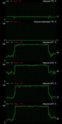 В первую очередь убедимся, действительно ли при захвате включается какое-то аппаратное ускорение. Если включается, то за счет чего происходит эта акселерация? Проведем последовательный захват в Adobe Premiere Pro, сначала с отключенным ускорением, а затем — с включенным. При этом станем анализировать состояние центрального и графического процессоров ноутбука. Вот и результаты:
