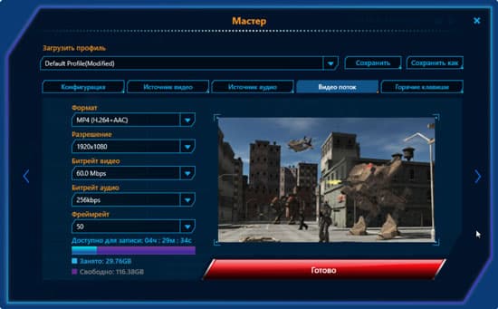 Что же касается настроек кодирования, доступных с рассматриваемым устройством — максимально допустимыми значениями, как было указано в таблице спецификаций, являются 1920×1080 с потоком 60 Мбит/с. Довольно высокое значение битрейта подразумевает, по всей видимости, высокое же качество сжатия. Но этот вопрос мы рассмотрим в следующей главе.