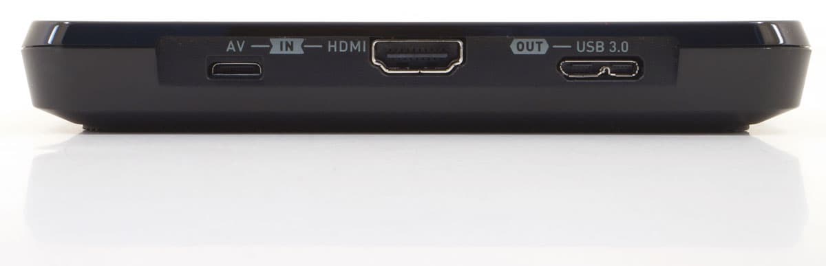 А вот и те самые интерфейсы, упомянутые выше. Их всего-то три: компонентный видеовход, скомпонованный с аналоговым аудиовходом, цифровой вход HDMI и порт USB3.0. Первый вывод, который можно сделать, глядя на этот набор интерфейсов: устройство невозможно использовать в качестве сквозного оцифровщика, поскольку видеовыход здесь отсутствует. Таким образом, использоваться аппарат может только одним способом: в качестве промежуточной станции между устройством вывода (игровая приставка, видеокамера, медиаплеер и т. д.) и персональным компьютером. При этом все управление и настройки осуществляются посредством прилагаемого программного обеспечения, которое установлено на этот ПК. На него же записывается и оцифрованное видео.