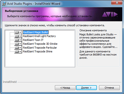 В пакет входит набор плагинов компании RedGiant — и снова вспоминается Pinnacle Studio, традиционно имеющая в составе подобные творения сторонних разработчиков.
