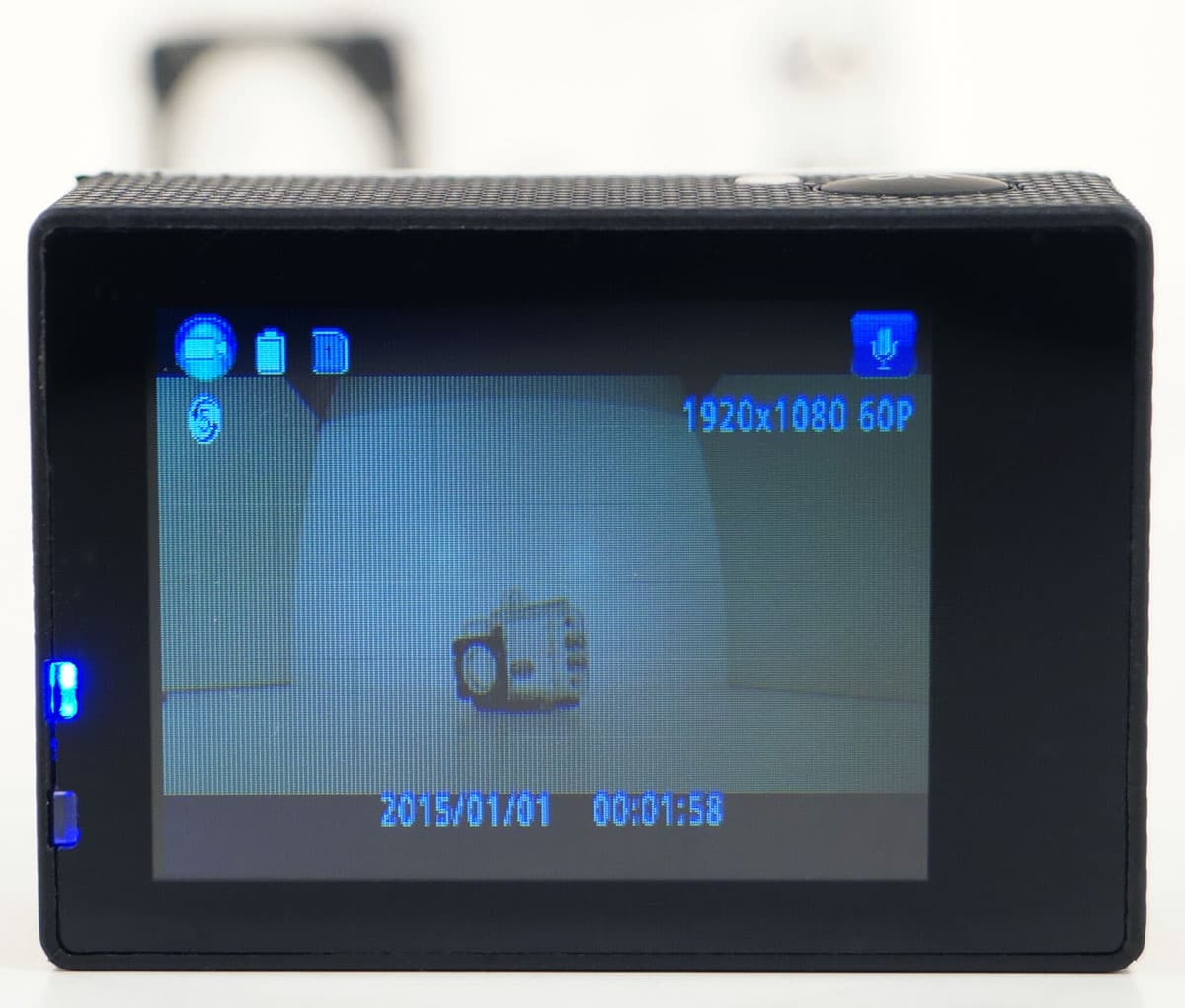 Форм-фактор камеры — типичный «кирпичик», с не менее типичным расположением органов управления и интерфейсов. В верхней части расположена «главная» кнопка REC, запускающая или останавливающая запись, а также включающая долгим нажатием встроенный Wi-Fi адаптер. Спереди находится кнопка включения и выключения аппарата, на одном из боков — еще две кнопки, служащие для переключения режимов и навигации по меню. Все интерфейсы собраны вместе и находятся также сбоку: Micro-USB, Micro-HDMI и слот для карты памяти формата microSD/SDHC/SDXC емкостью до 64 ГБ. Крышка, которая бы прикрывали эти выходы, отсутствует. Ну и хорошо, она ни для чего особо-то и не нужна, кроме как для «потеряться».
