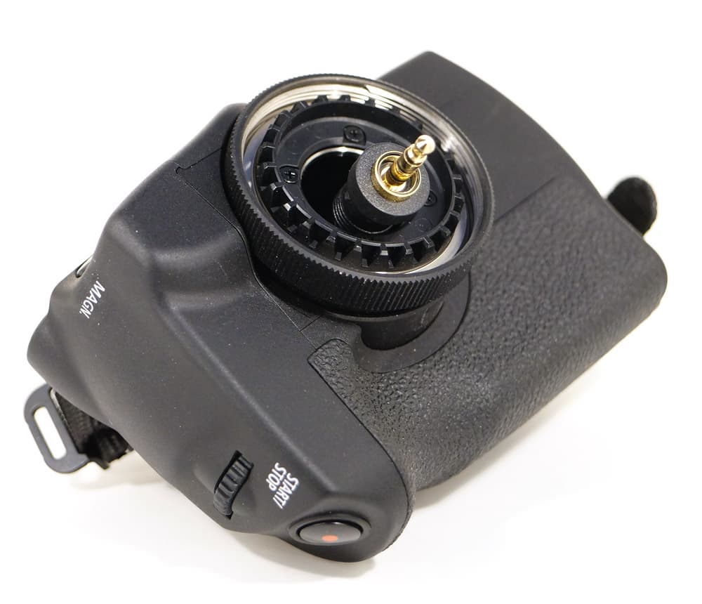 Боковая рукоятка по форме напоминает пистолетную, и имеет управляющие элементы: кнопку-джойстик для навигации по меню и изменения некоторых параметров, программируемую кнопку, колесо подстройки и еще одну кнопку записи, которая находится под указательным пальцем руки, просунутой в удерживающий ремень. Примечательно, что данная рукоятка может быть прикреплена к корпусу под любым углом по вертикали.