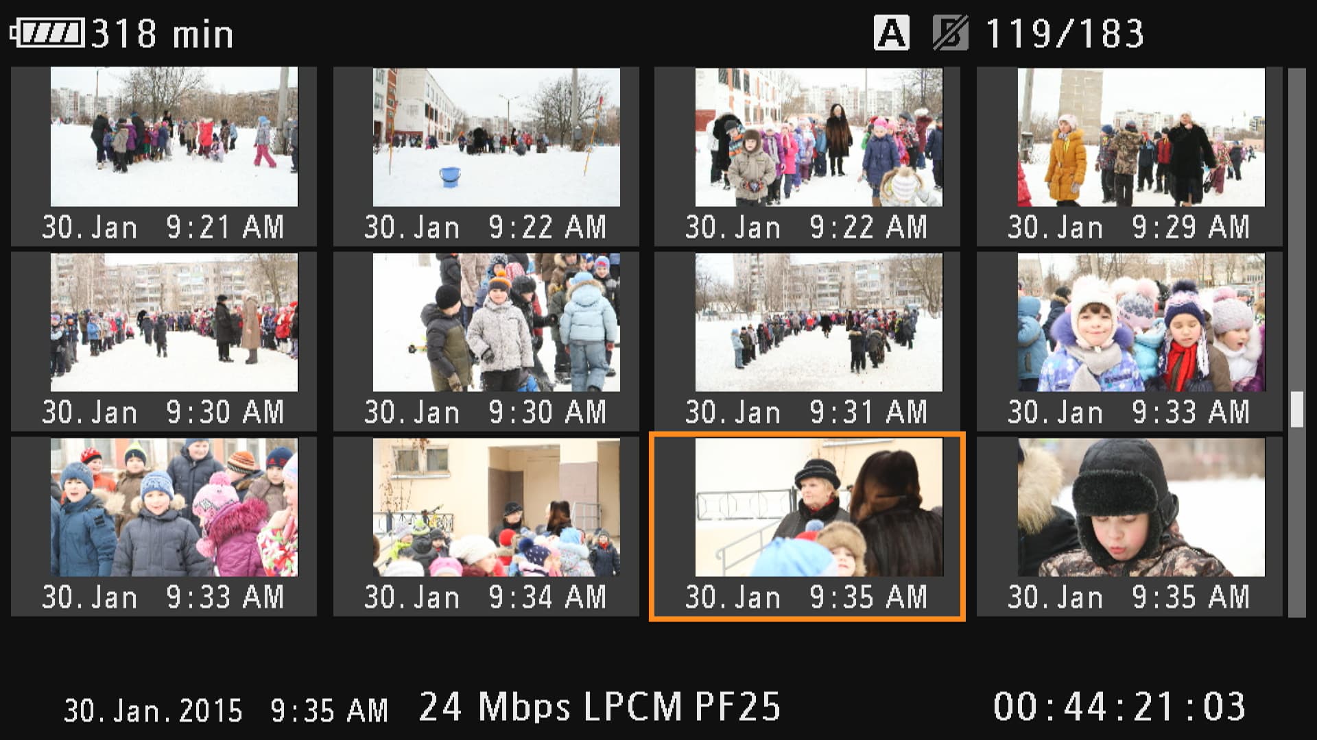 Да, выбор пресета EOS Std без прикрытия диафрагмы либо применения одного или нескольких ND-фильтров означает большую вероятность пересветить картинку. На дисплее камеры картинка кажется вполне правильной — не пересвеченной, в отличие от результата, который дает такой киношный пресет, как EOS Std. Можно сказать, что автор «купился» на такую «художественность» сцены и, не имея возможности просмотреть снятое в спокойных условиях, провел небольшую съемку детской зимней олимпиады. В итоге позже, при просмотре материала, оказалось, что буквально все сцены, где имеется снег, пересвечены.