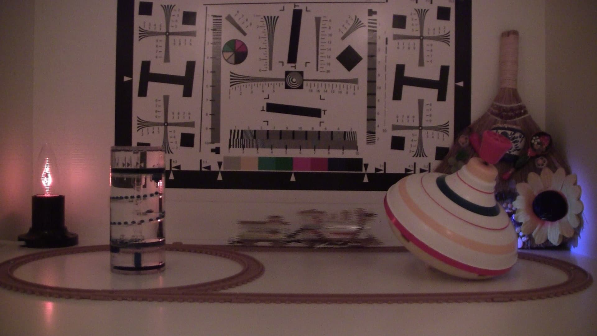 Данное тестирование проводится согласно опубликованной методике в целях установления чувствительности видеокамеры в неизменяемых условиях, а также для определения относительной чёткости выдаваемой картинки; результаты этих тестов аккумулируются на сравнительной странице.